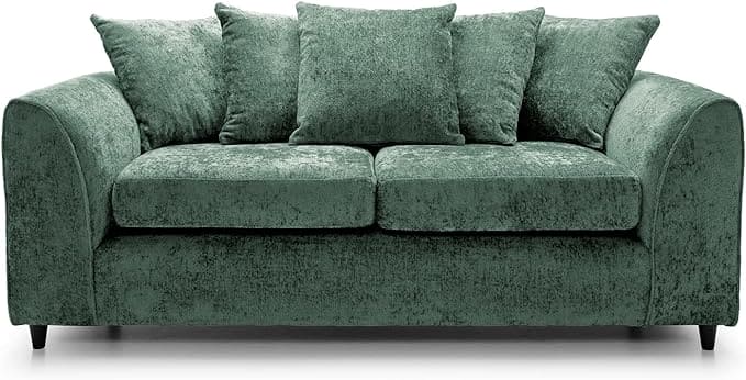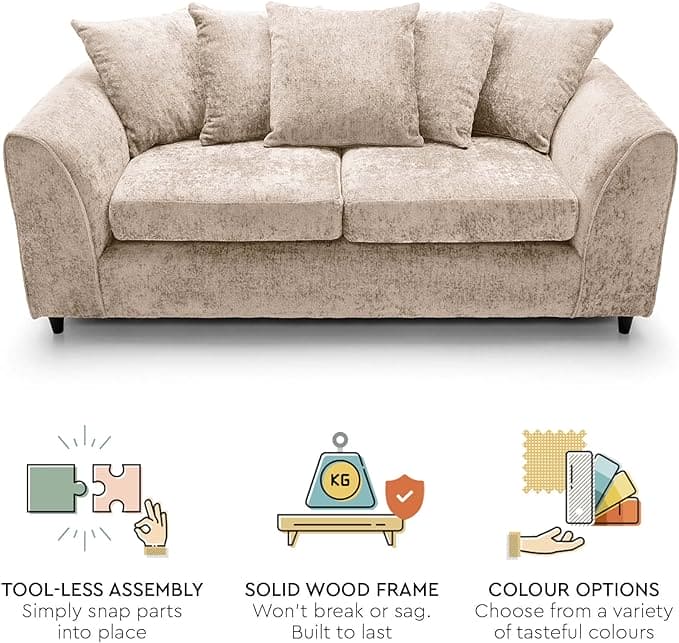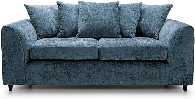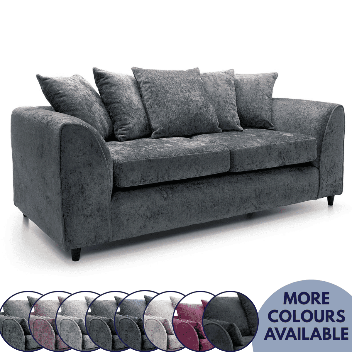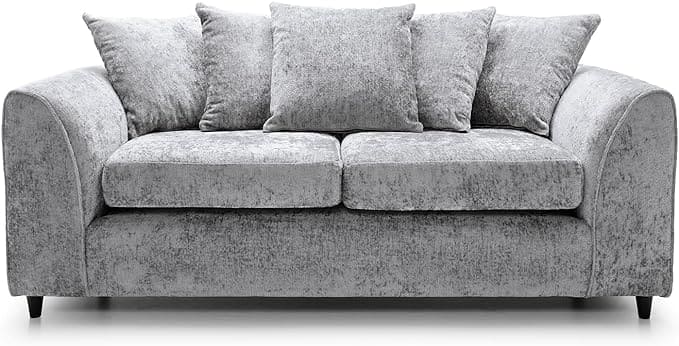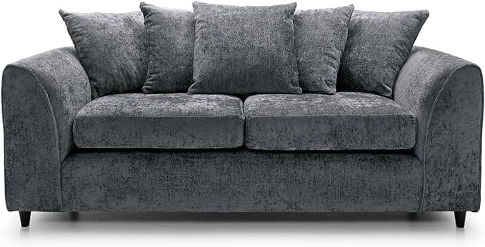 This sofa will provide sophistication to any room. Upholstered in a soft grey chenille fabric with black wooden feet. Finished with deep-filled foam seating cushions for longevity and comfort. Generously fiber-filled scatter back cushions create a fantastic place to sit back and relax.