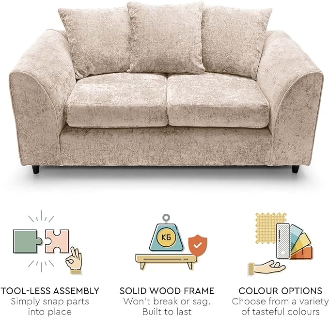 The sofas are a modern design. The range offers combinations for any living room, the sofas are upholstered in a super soft chenille fabric. We can upholster them in several colours to suit any room. Deep filled seats with memory foam and large fibre filled scatter back cushions for a great and comfortable seating experience. The seating is constructed with web seating to offer longer lasting comfort. This range will stand the test of time and will be sure to brighten your home.