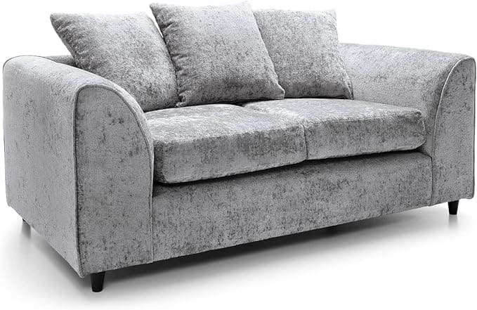 A fabulous 2 seater sofa upholstered in a sumptuous crushed chenille - a fuzzy cotton yarn of fabric that has pile protruding around the weave creating a caterpillar look. Stylishly contemporary with clean straight lines, this stunning sofa would be a great addition to any modern home. Bring a touch of glamour to your living room with the Harriet collection.
