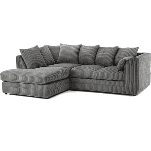 A grey jumbo cord corner sofa? Perhaps in beige? We have it both! Enjoy a lavish chaise corner sofa upholstered in the most pristine soft structured cord chenille fabric there is. Soft to the touch. Opulent and inviting in its visual appeal. Angular arms, a pared back and generously filled scatter cushions provide a very contemporary style statement. A sofa destined to become your old faithful.