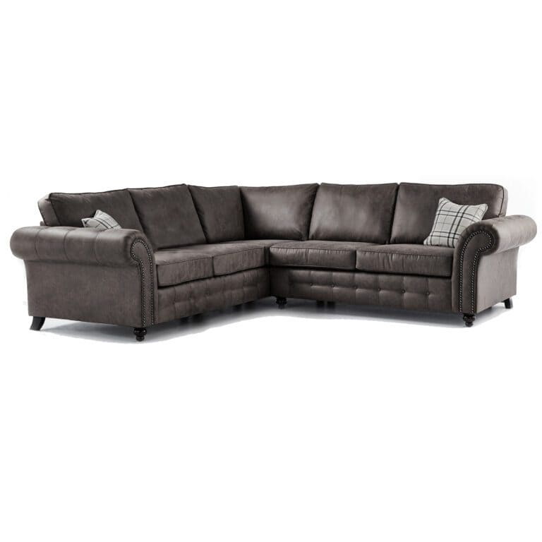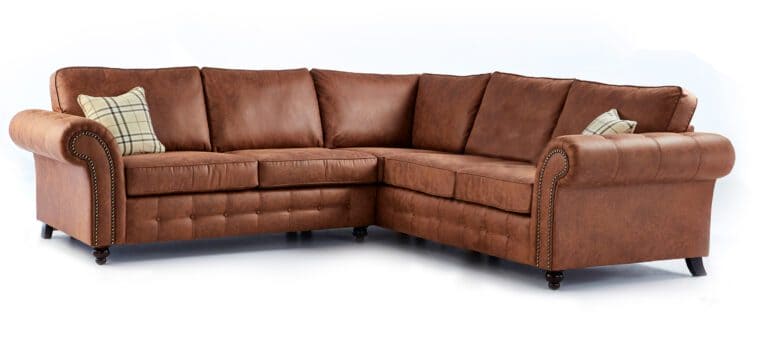 The Oakland leather effect Corner Sofa is a type of upholstery furniture that features a stylish and comfortable design and vintage look. The corner design allows it to fit comfortably into the corner of a room, maximizing space and providing ample seating for multiple people.