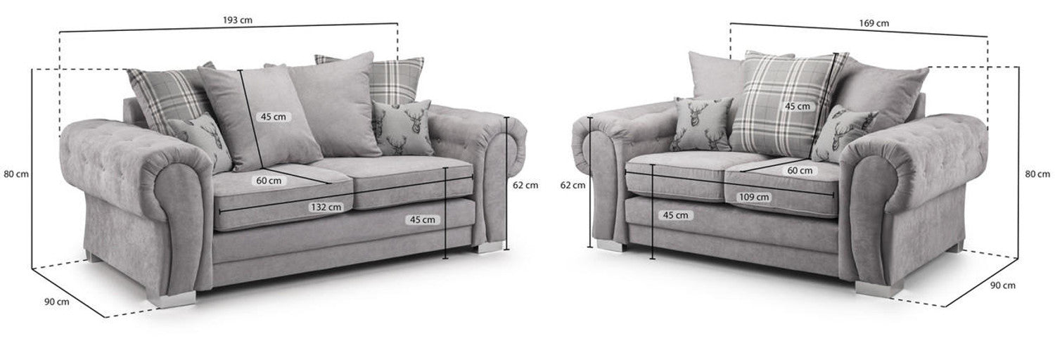 Introducing our elegant and versatile Verona (3+2) seater sofas, designed to elevate the comfort and style of your living space. This perfect combination includes a 3-seater sofa measuring 195cm in width and 90cm in depth, along with a 2-seater sofa measuring 165cm in width and 90cm in depth.